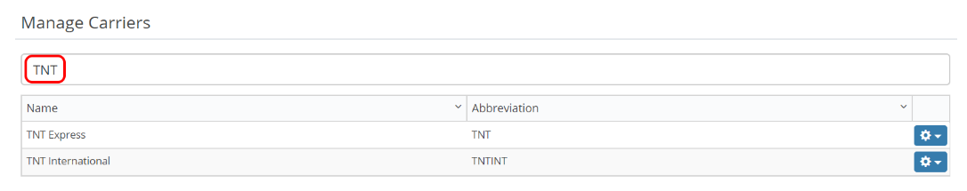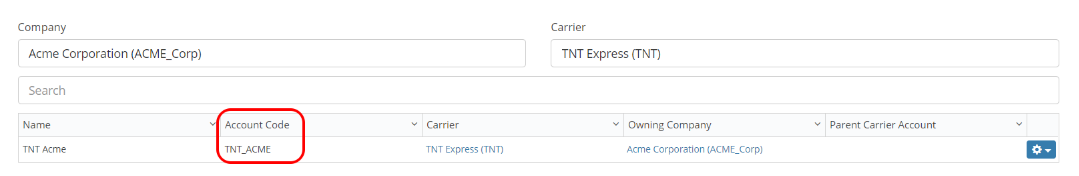 Use the Company or Carrier filters along with the Search bar in order to find the created Carrier Account.