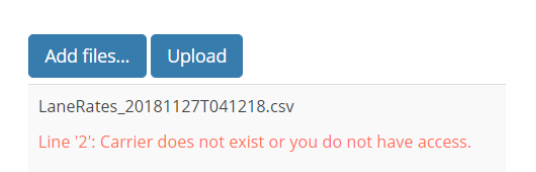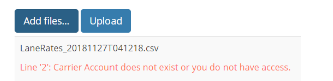 This error will appear when you have not used the carrier account abbreviation in the second column of the import.