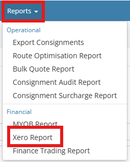 Use this guide to export Financial invoices from MachShip in a CSV format compatible with Xero. The export includes the minimum fields Xero requires for invoice import: Contact name, Invoice Number, Invoice Date, Due Date, Description, Qty, Unit Amount, AccountCode, TaxType.