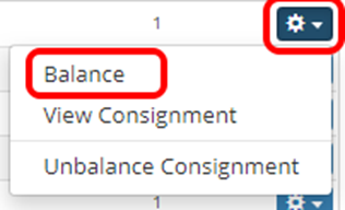 Find the invoice entry that needs to be reconciled, click the cog, and select Balance.