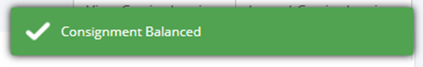 MachShip will update the consignment and confirm it has been balanced with the green success bar shown below:
