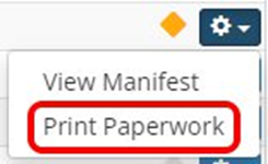 - It can also be accessed via the View Manifest, click on the cog-wheel on the right-hand side, and click on the Print Paperwork.