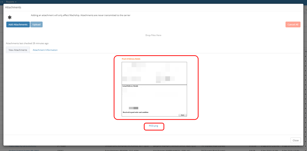 An Attachment modal will prompt. There will be an image of the POD in the middle of the modal.