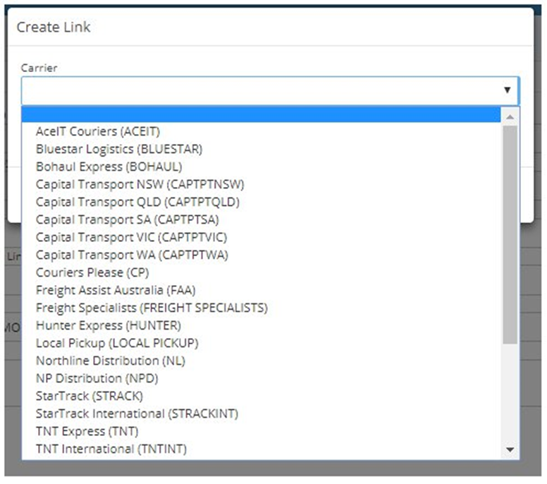 4. Select the carrier from the drop down. This will list all carriers which are assigned to that company.