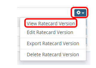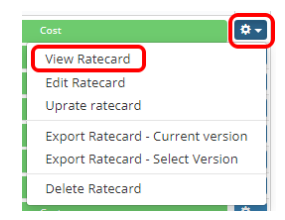 3. Once you have found the ratecard select the cog on the left and the option View Ratecard.