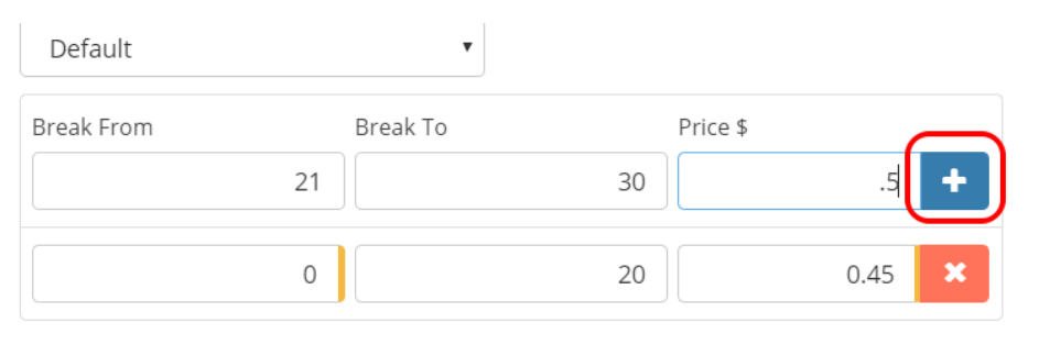 Then set each of the breaks by applying a Break From, Break To and a Price then select the plus icon to add the price.