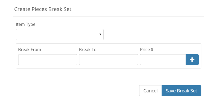 Once selected, the screen will refresh and you will then be able to set the pricing Breaks.