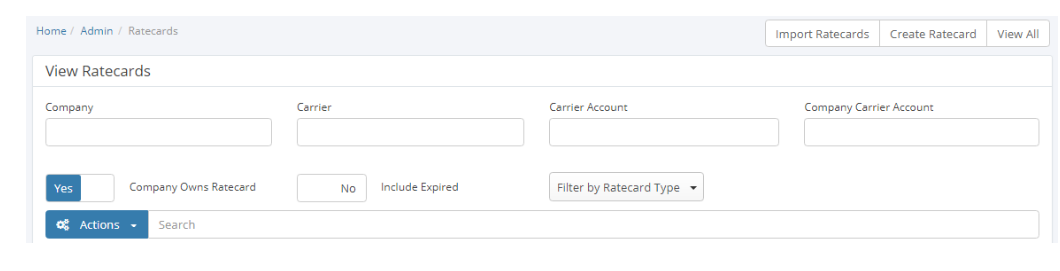 2. Use the filters and the search bar to find the ratecard you wish to alter.