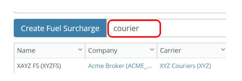 Once you have reached the Fuel Surcharges screen you will be faced with a table of all the fuel surcharges which are linked to your account. This table is outlined like the below: