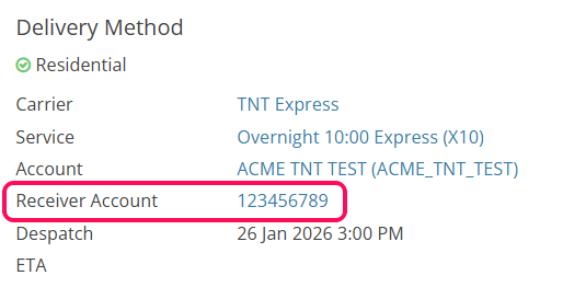 Receiver Account Field in Delivery Method: