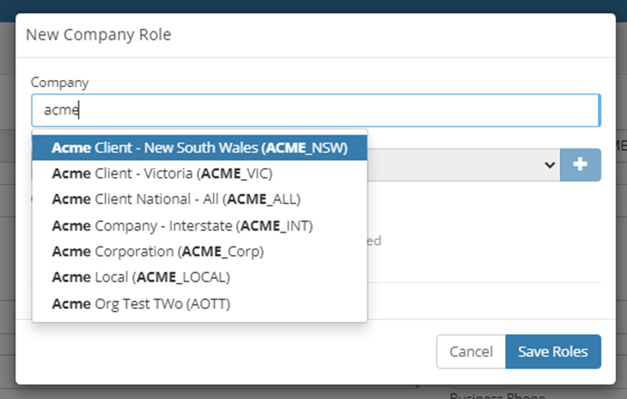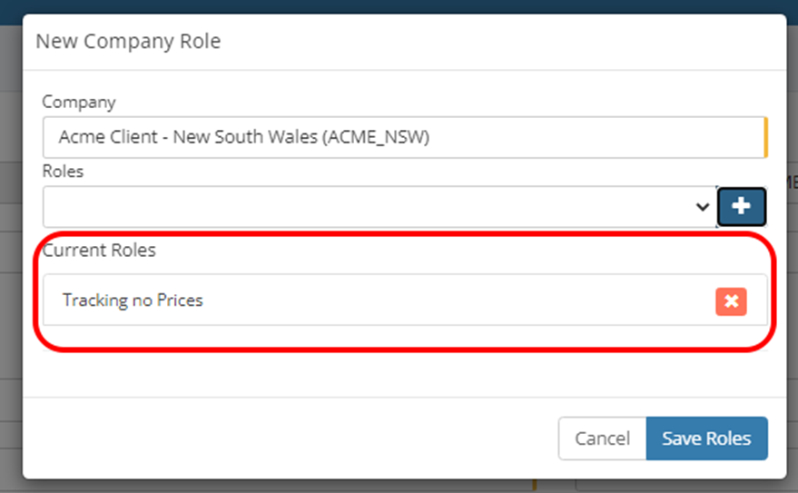 This will prompt the New Company Role modal to appear.