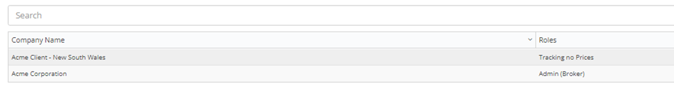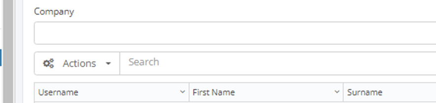 Utilising either the Company filter or the Search bar you can filter down the grid to find your required user: