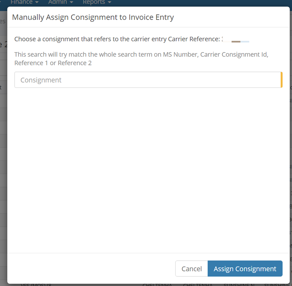 Select Finance, scroll down to the Reconciliation section and click View Carrier Invoices.