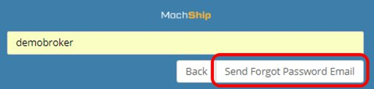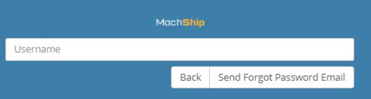 Provide your unique MachShip username and select Send Forgot Password Email.