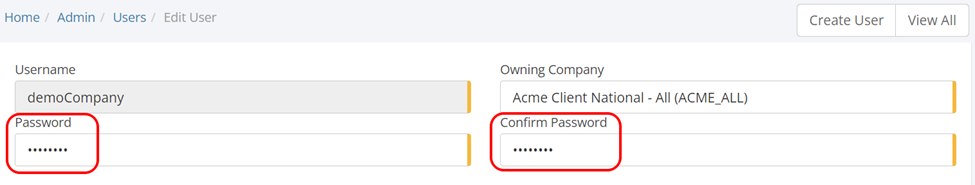 Once on the Edit User page, you will be provided with the ability to edit any of the fields against a user, including the password.