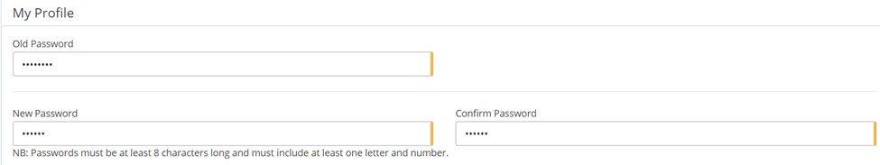2. New Password - This will need to be at least 8 characters in length and include at least 1 number and 1 letter.