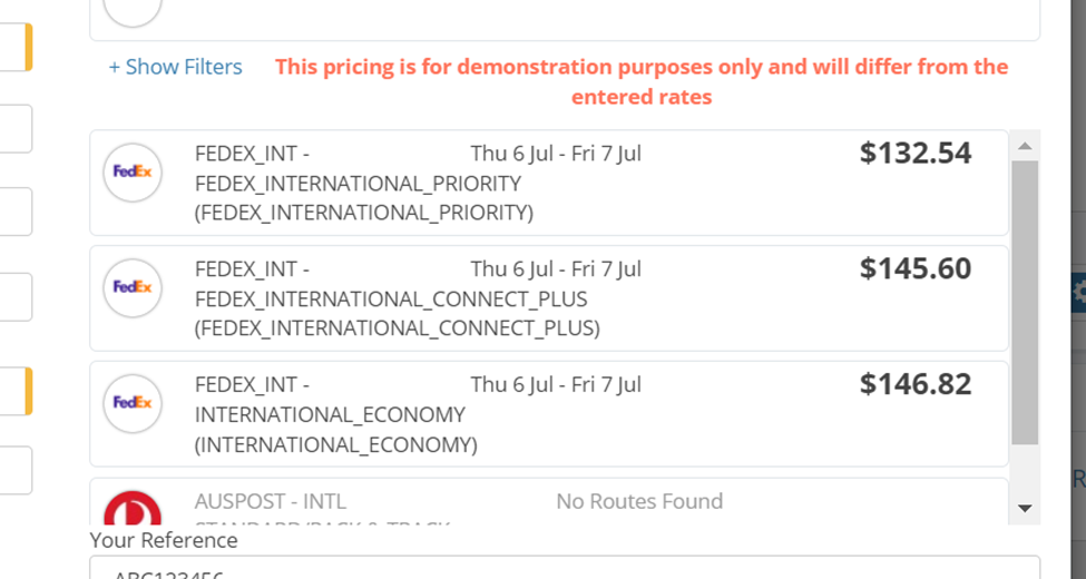 The Route Carrier Selection option will quote all available freight options for you as you finalise the consignment. Pricing will be shown as a scrollable listing that is ordered based on your company's specified price ordering.