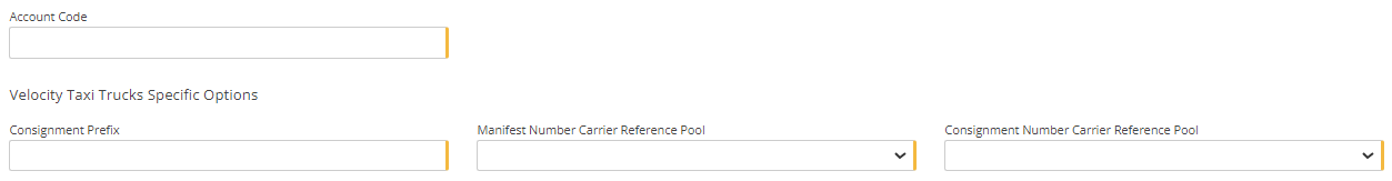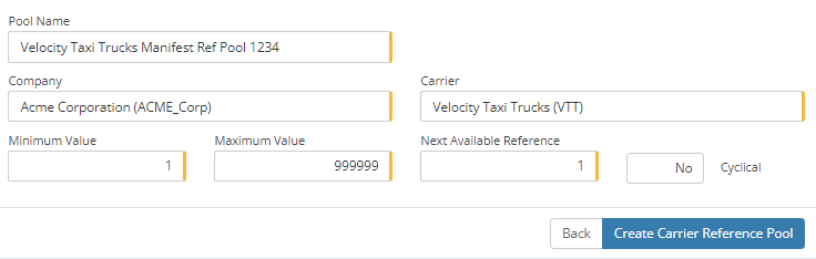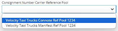 Reference Pools - Reference pools are utilised by MachShip in order to maintain a count on the connote, manifest and item numbers. The reference pool will ensure that each of those numbers is unique to what we have sent to the carrier previously. More information can be obtained on reference pools here. Velocity Taxi Trucks require the creation of 2 reference pools for the Manifest number and Consignment number.