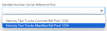 Pool Name - Set as Velocity Taxi Trucks Manifest Ref Pool <Account Code>