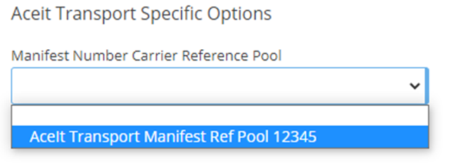 Pool Name - Set as AceIt Transport Manifest Ref Pool <Account Code>
