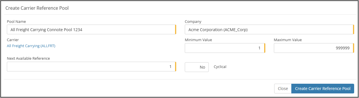 Pool Name - Set as All Freight Carrying Connote Ref Pool <Account Code>