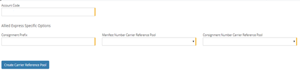 Pool Name - Set one as Allied Express Manifest Pool <Account Code> and one as Allied Express Consignment Pool <Account Code>
