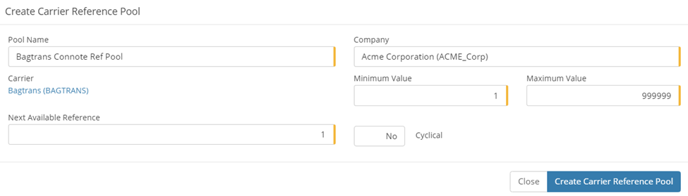 To create the reference pool select the Create Carrier Reference Pool button at the bottom of the page.