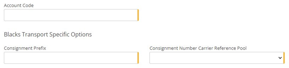 When looking to set up a new account with Blacks Transport, you will need to coordinate with your account manager, and you will need to set the below specific options: