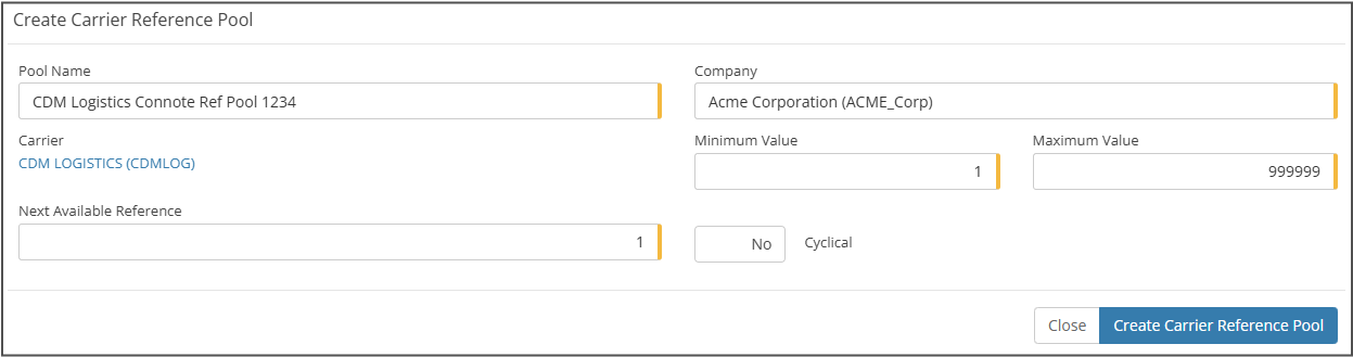 Pool Name - Set as CDM Logistics Connote Ref Pool <Account Code>