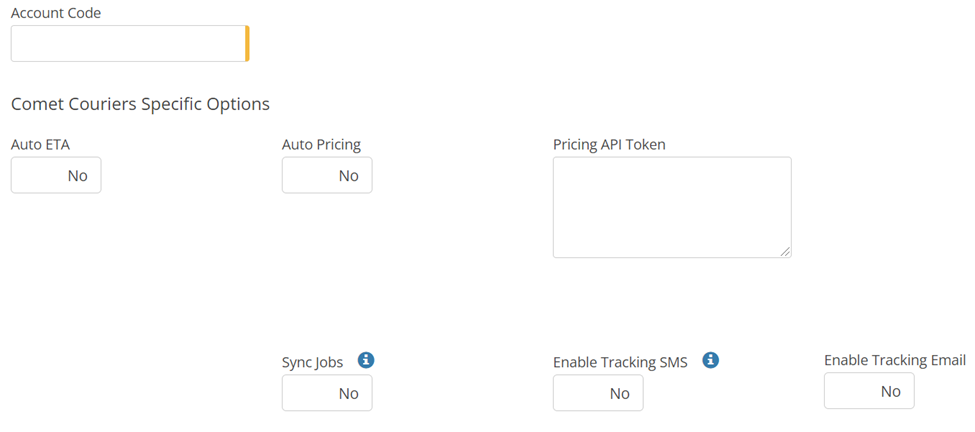 Please note that the Auto ETA and Auto Pricing flags have been set up for a specific account type integration with Comet Carriers. If you have not been advised to set these as Yes, please leave them all as No.