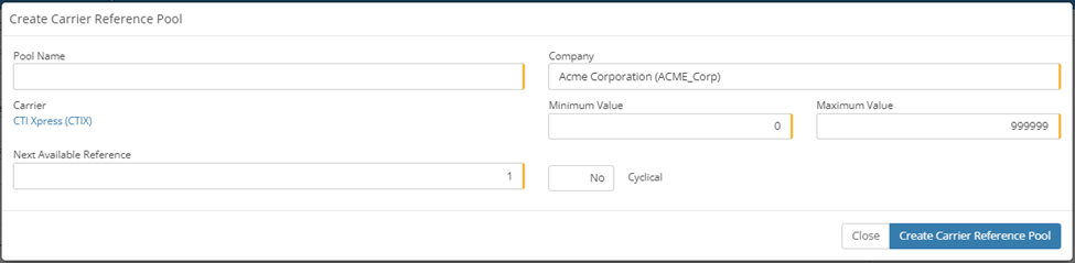 Reference Pools - Reference pools are utilised by MachShip in order to maintain a count on connote, manifest, and item numbers. The reference pool will ensure that each of those numbers is unique to what we have sent to the carrier previously. More information can be obtained on reference pools here. CTI Xpress requires the creation of just 1 reference pool, for the Manifest number.