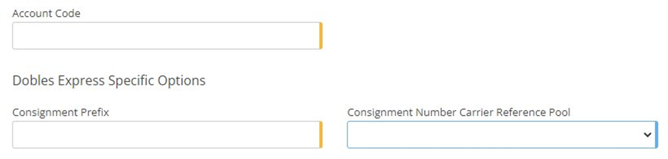 Once the Dobles Express team responds, then we need to fill out the carrier-specific options.
