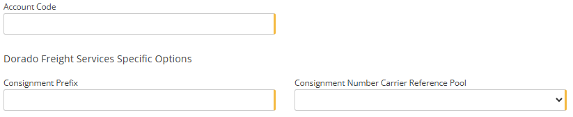 Once the Dorado Freight Services team responds, then we need to fill out the carrier-specific options.