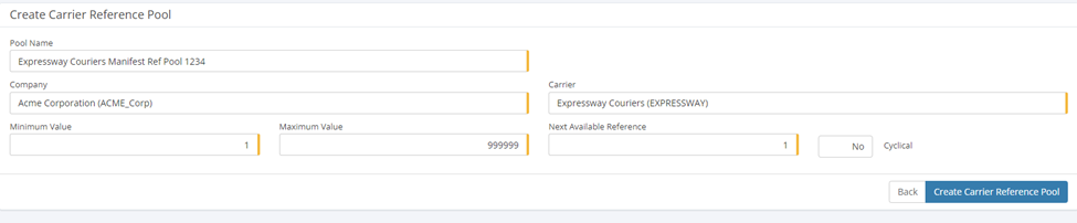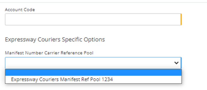 Pool Name - Set as Expressway Couriers Manifest Ref Pool <Account Code>