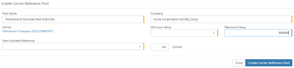 Reference Pools - Reference pools are utilised by MachShip in order to maintain a count on connote, manifest and item numbers. The reference pool will ensure that each of those numbers is unique to what we have sent to the carrier previously. More information can be obtained on reference pools here. Followmont requires the creation of just 1 reference pool, for the Connote number.