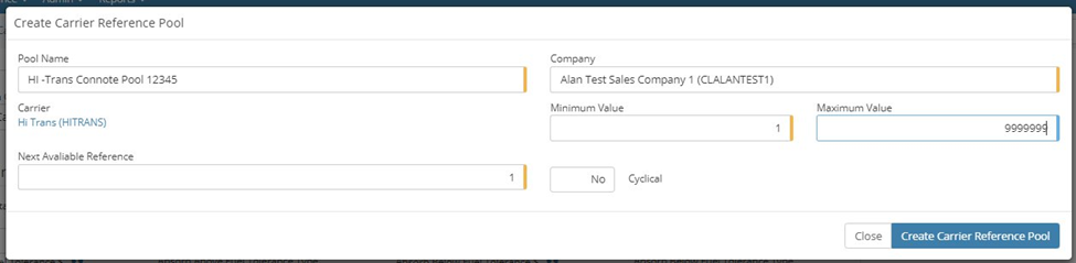 To create the reference pool select the Create Carrier Reference Pool button at the bottom of the page.