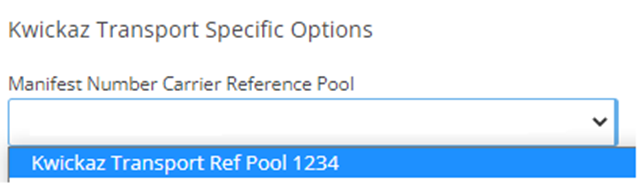 Pool Name - Set as Kwickaz Transport Manifest Ref Pool <Account Code>