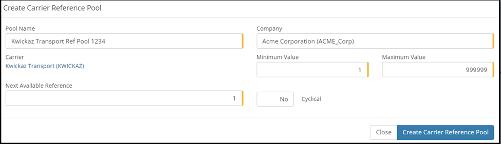 To create the reference pool select the Create Carrier Reference Pool button at the bottom of the page.