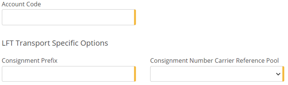 The set up with the carrier LFT Transport does not require any specific information to be provided by their IT team, as such the only specific options are: