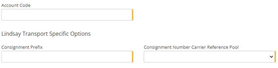 When looking to set up a new account with Lindsay Transport you will need to set the below specific options: