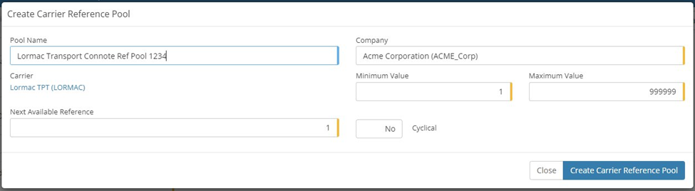 Pool Name - Set as Lormac Transport Connote Ref Pool <Account Code>