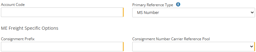 Reference Pools - Reference pools are utilised by MachShip in order to maintain a count on connotes, manifests, and item numbers. The reference pool will ensure that each of those numbers is unique from what we have sent to the carrier previously. More information can be obtained on reference pools here. ME Freight requires the creation of just 1 reference pool for the Connote number.