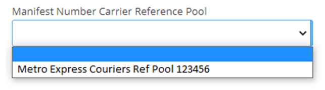 Pool Name - Set as Metro Express Manifest Ref Pool <Account Code>