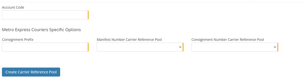 Pool Name - Set as Metro Express Connote Ref Pool <Account Code>