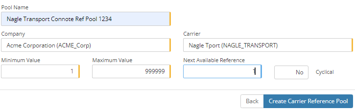 Pool Name - Set as Nagle Transport Connote Ref Pool <Account Code>