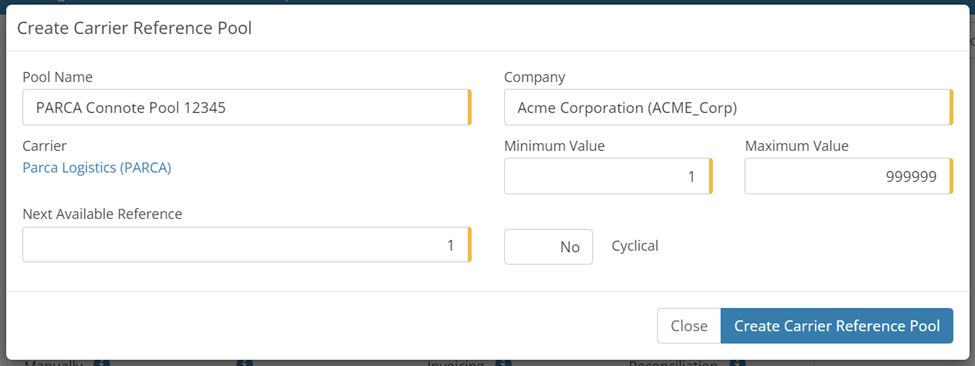 Reference Pools - Reference pools are utilized by MachShip in order to maintain a count on connote, manifest and item numbers. The reference pool will ensure that each of those numbers is unique to what we have sent to the carrier previously. More information can be obtained on reference pools here. Parca Logistics requires the creation of just 1 reference pool, for the Connote number.