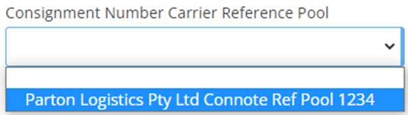 Pool Name - Set as Parton Logistics Pty Ltd Connote Ref Pool <Account Code>
