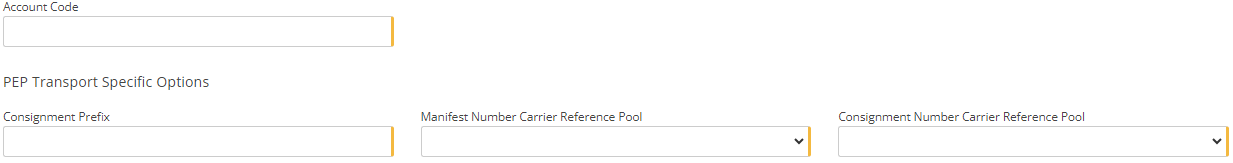 All of the quoting, booking and tracking with PEP Transport is run off an API call. The integration set up with the carrier does not require any specific information to be provided by their IT team, as such the only specific options are: