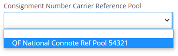 Pool Name - Set as QF National Connote Ref Pool <Account Code>