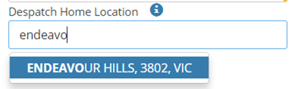 Despatch Home Location - Set this to be the major despatch location for this account. Startrack will have created each despatch ID as linked to a sending location or suburb. Please enter in this suburb and select from the list provided.
